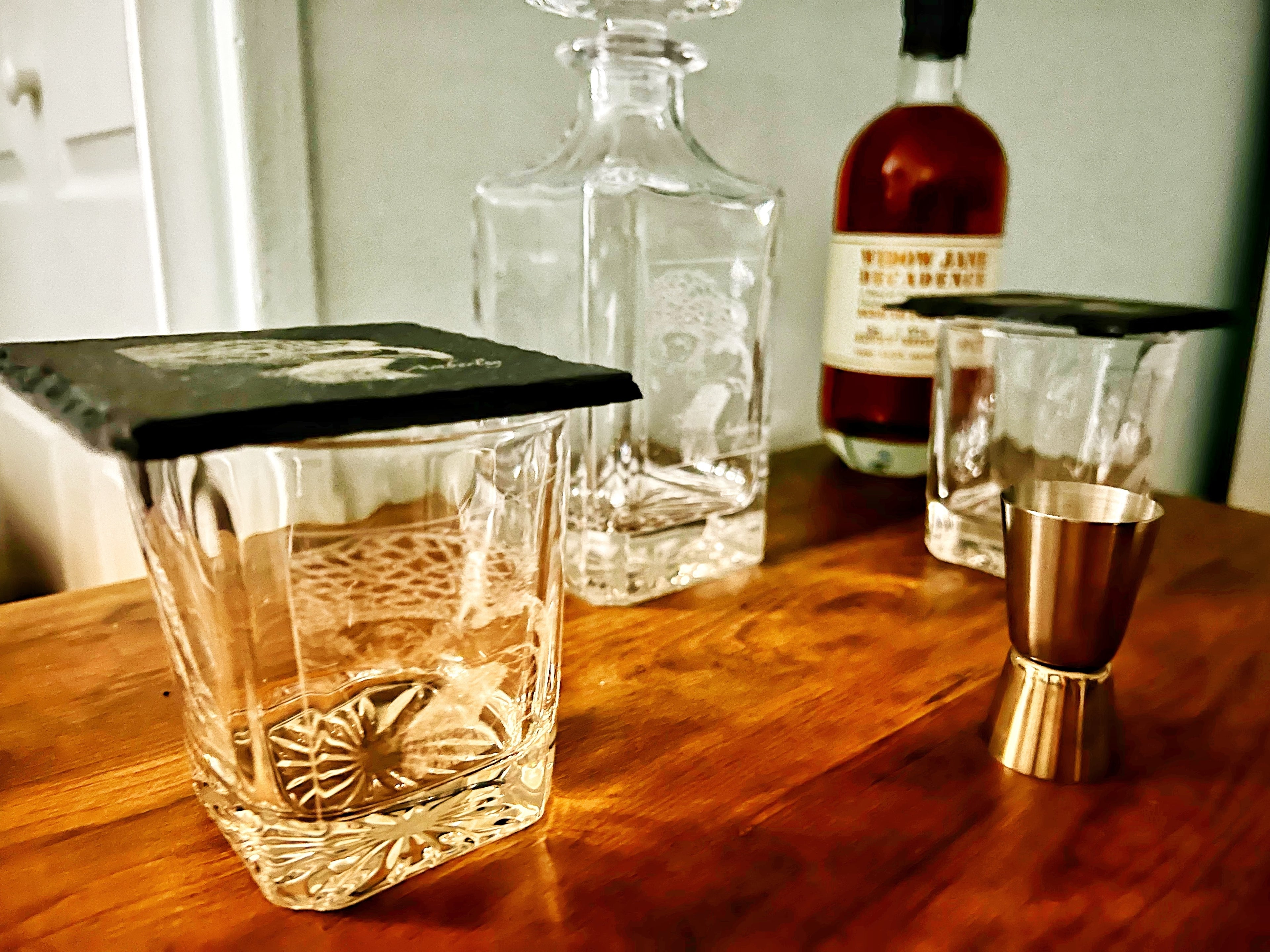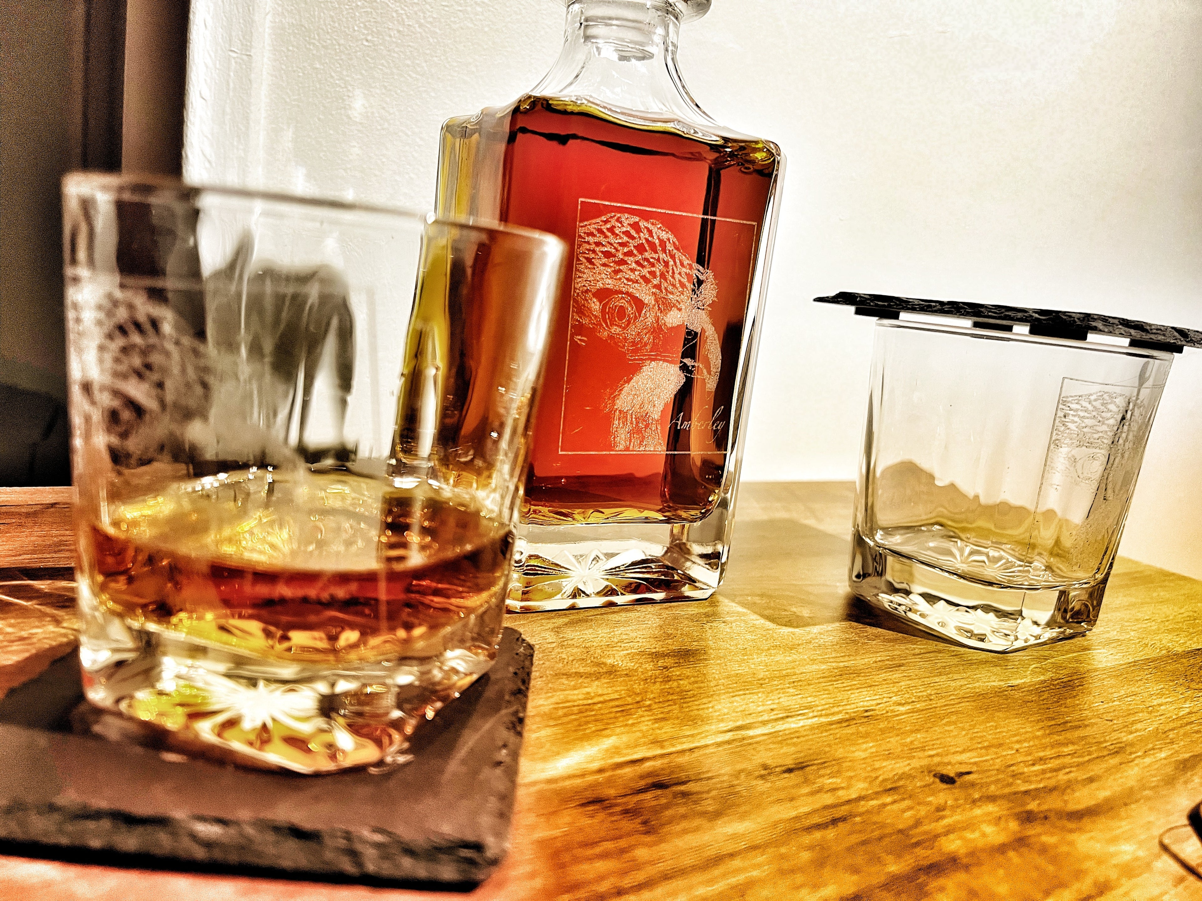 Elevate your home bar or make a lasting impression with this exquisite Personalized Engraved Whisky and Bourbon Decanter Set. Crafted for connoisseurs and collectors alike, this luxurious set features a beautifully designed crystal decanter paired with matching engraved glasses, all customizable to add a personal touch.